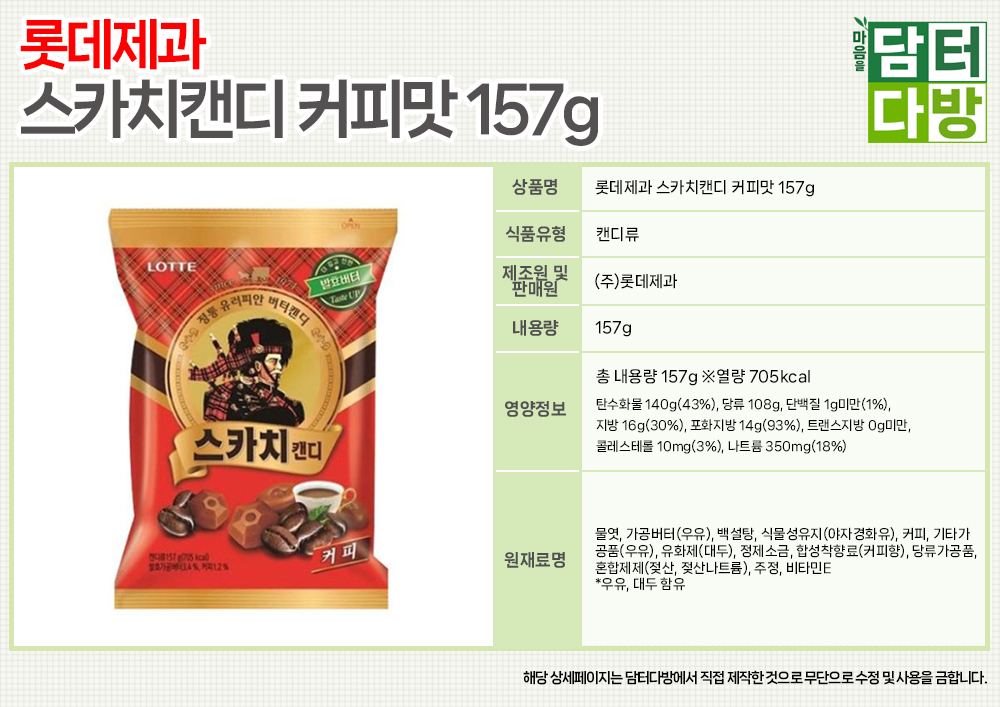 롯데제과 스카치캔디 커피맛 157g X 20개