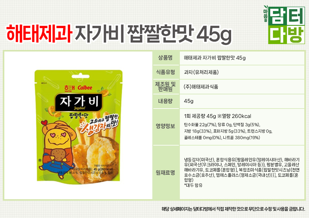 해태제과 자가비 짭짤한맛 45g X 12개