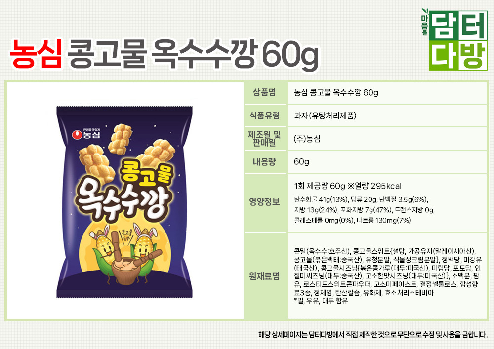 농심 콩고물 옥수수깡 60g X 16개