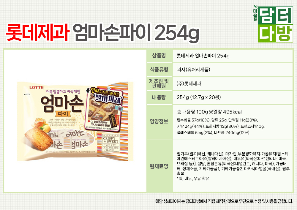 롯데제과 엄마손파이 254g X 5개
