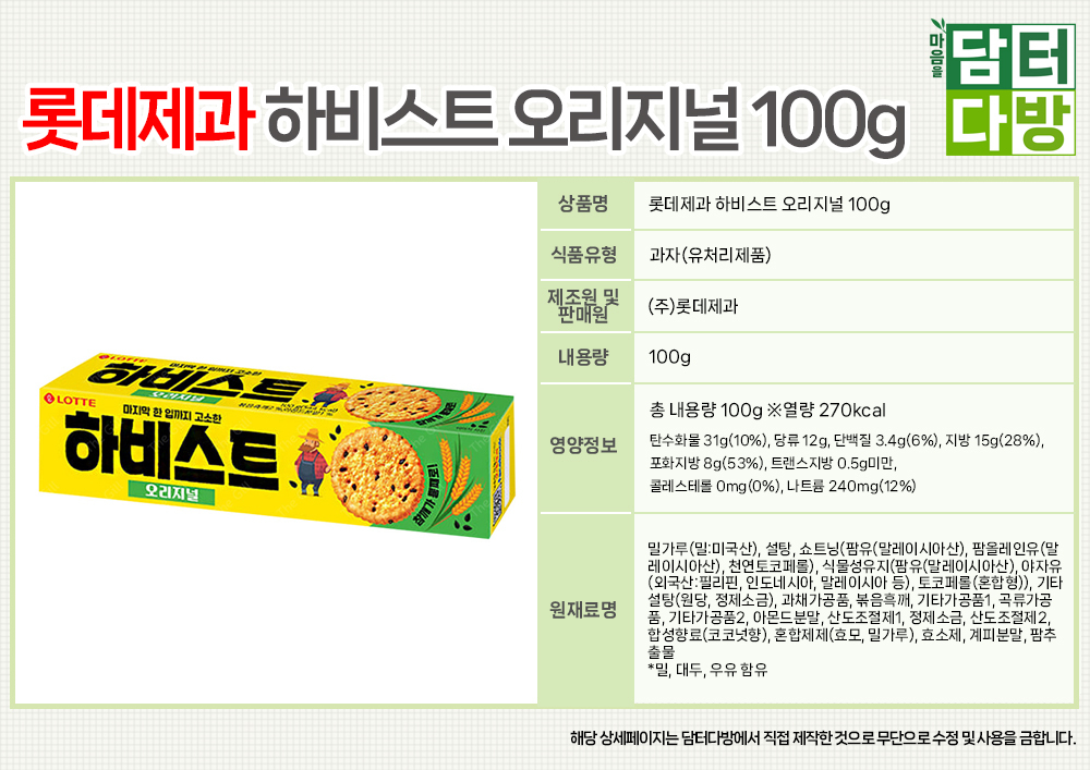 롯데제과 하비스트 오리지널 100g X 10개