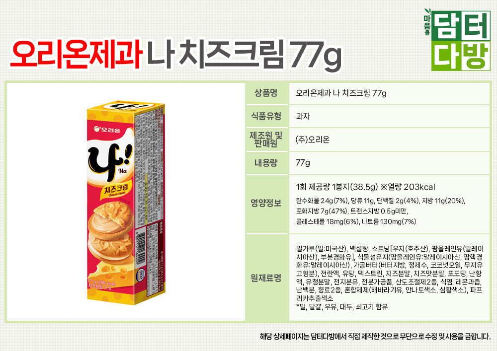 오리온제과 나 치즈크림 77g X 10개