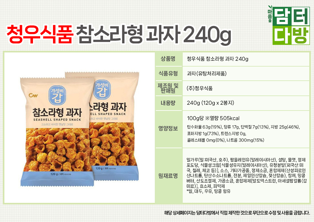 청우식품 참소라형 과자 240g(120g x 2번들) X 5개