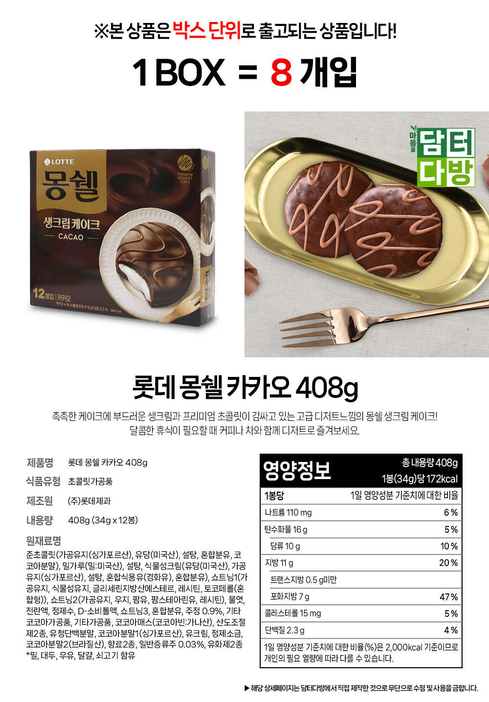 롯데 몽쉘 카카오 408g 1BOX (8개입)