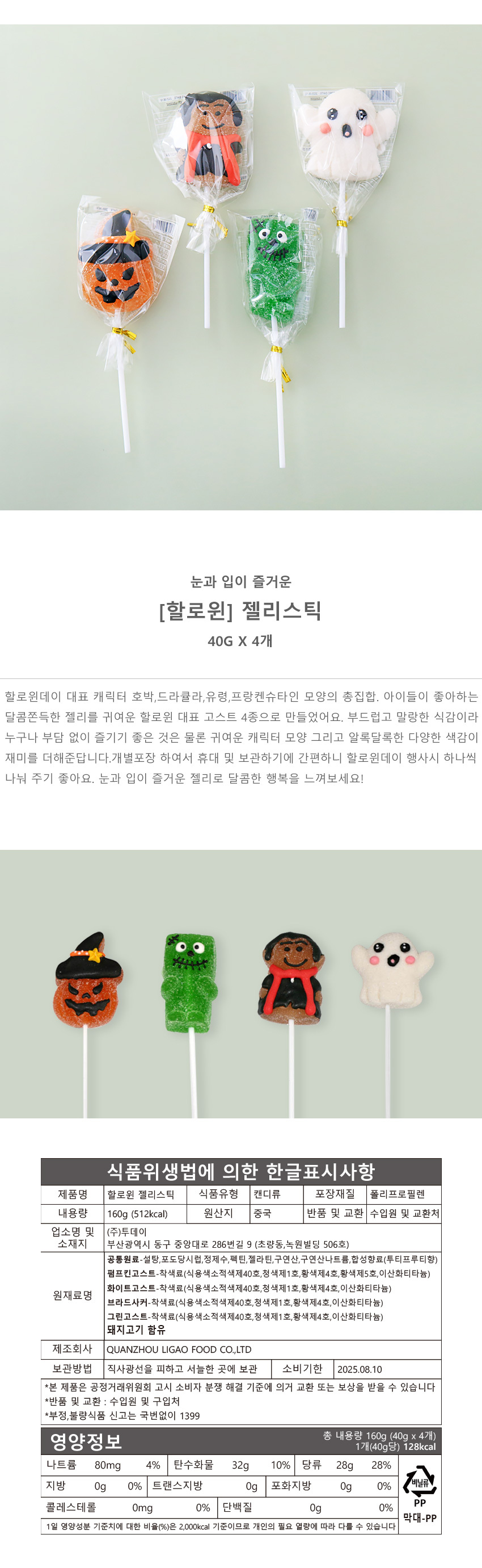 할로윈 젤리 스틱 40g 4개 사탕 캔디 단체 선물 행사