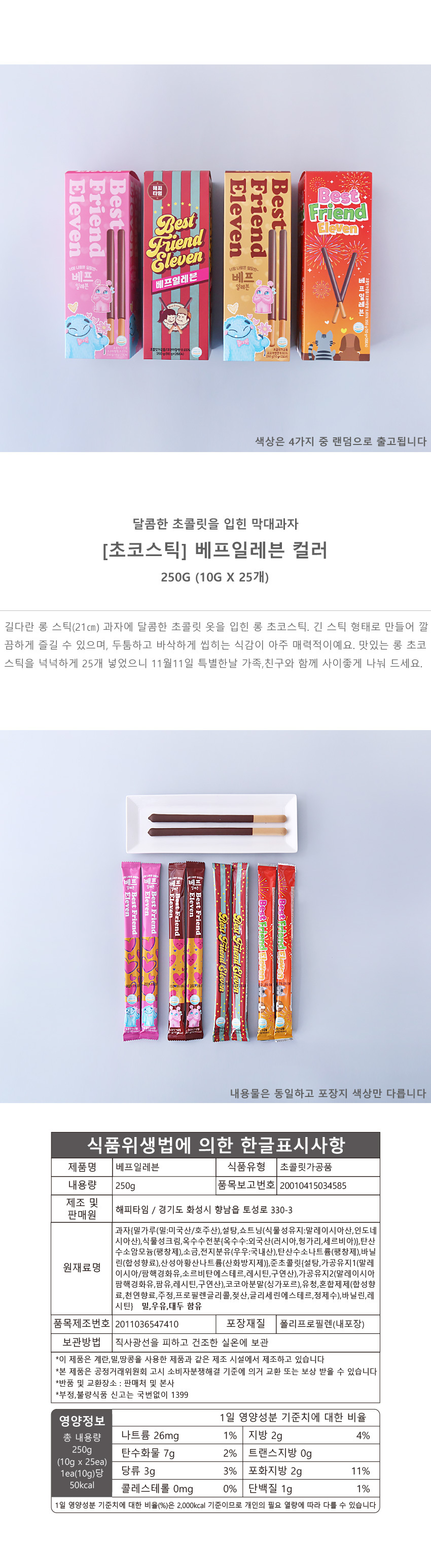 베프일레븐 컬러포장 25개입 초코 스틱 막대 과자