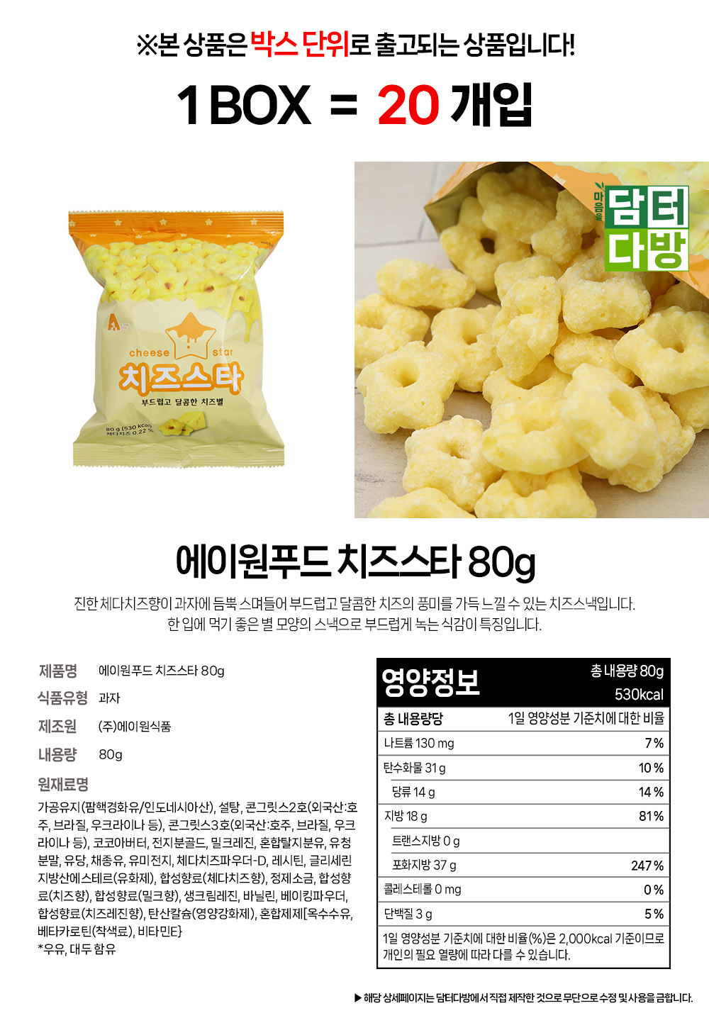 에이원푸드 치즈스타 80g 1BOX (20개입)