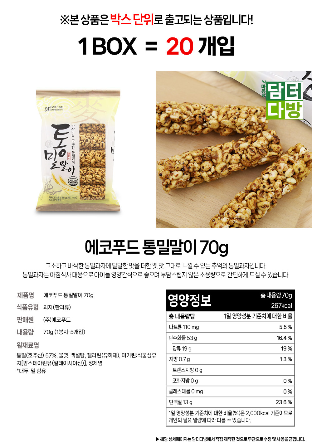 에코푸드 통밀말이 80g 1BOX (20개입)
