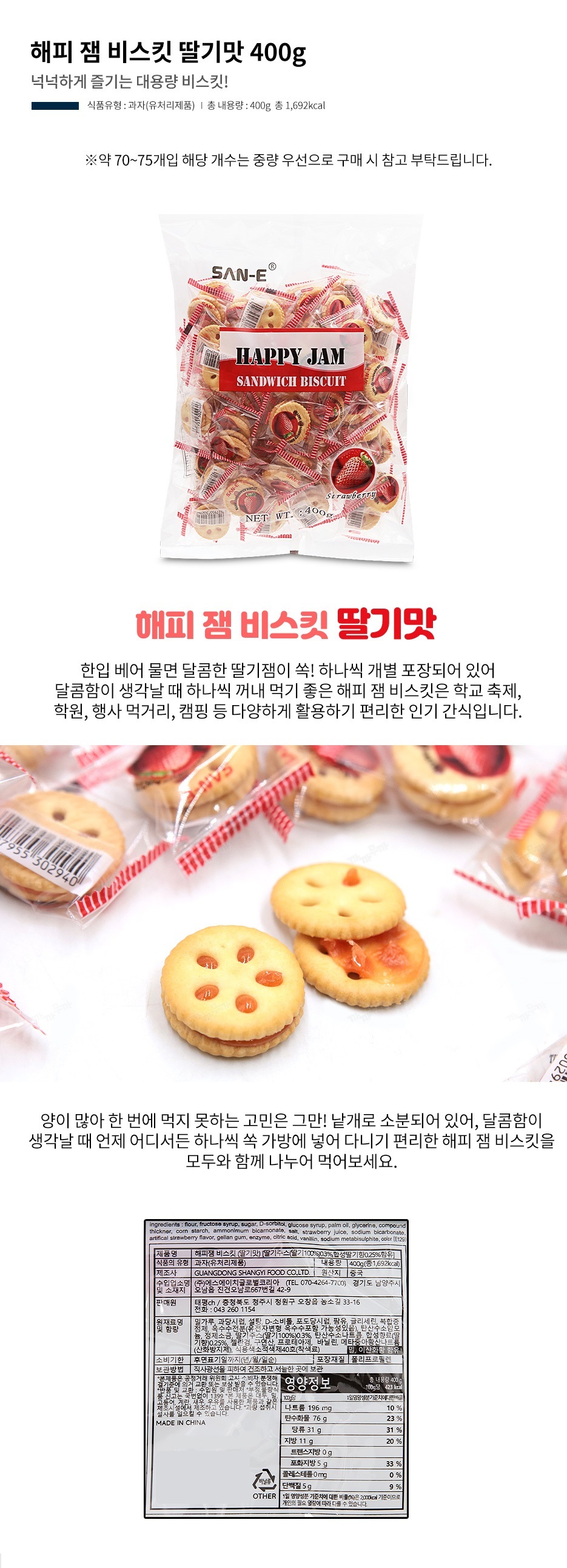 무배) 해피 잼 비스킷 딸기맛 400g X 2개 대용량 디저트과자