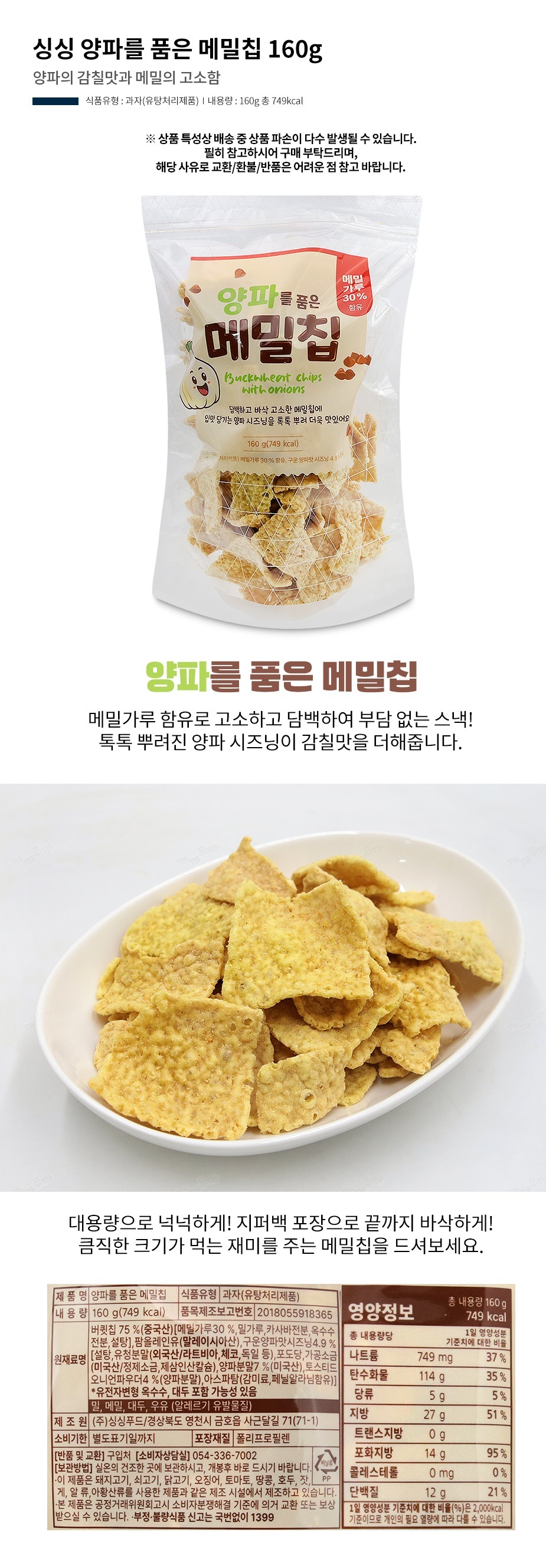 무배) 싱싱 양파를 품은 메밀칩 160g X 8개 대용량 버큇칩