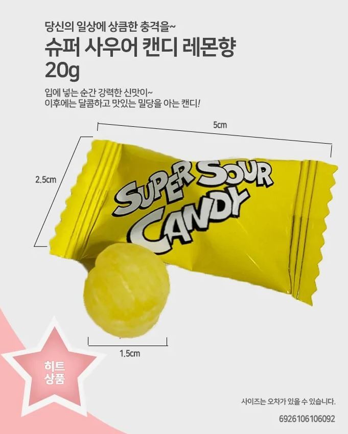 무배) 슈퍼 사우어 캔디 레몬향 사탕 20g X 10개