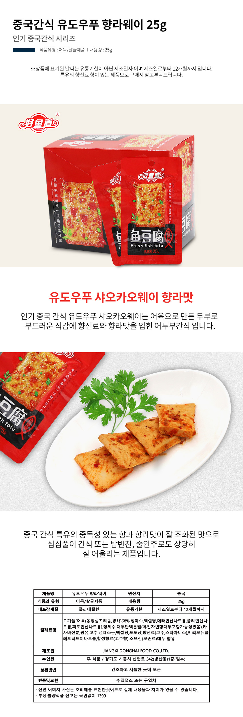 무배) 중국간식 유도우푸 향라웨이 향라맛 25gx20개 (1통) 어두부 어묵