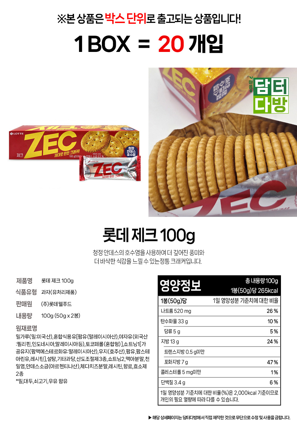 롯데 제크 100g 1BOX (20개입)