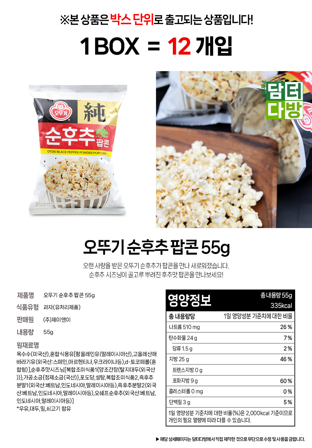 오뚜기 순후추 팝콘 55g 1BOX (12개입)