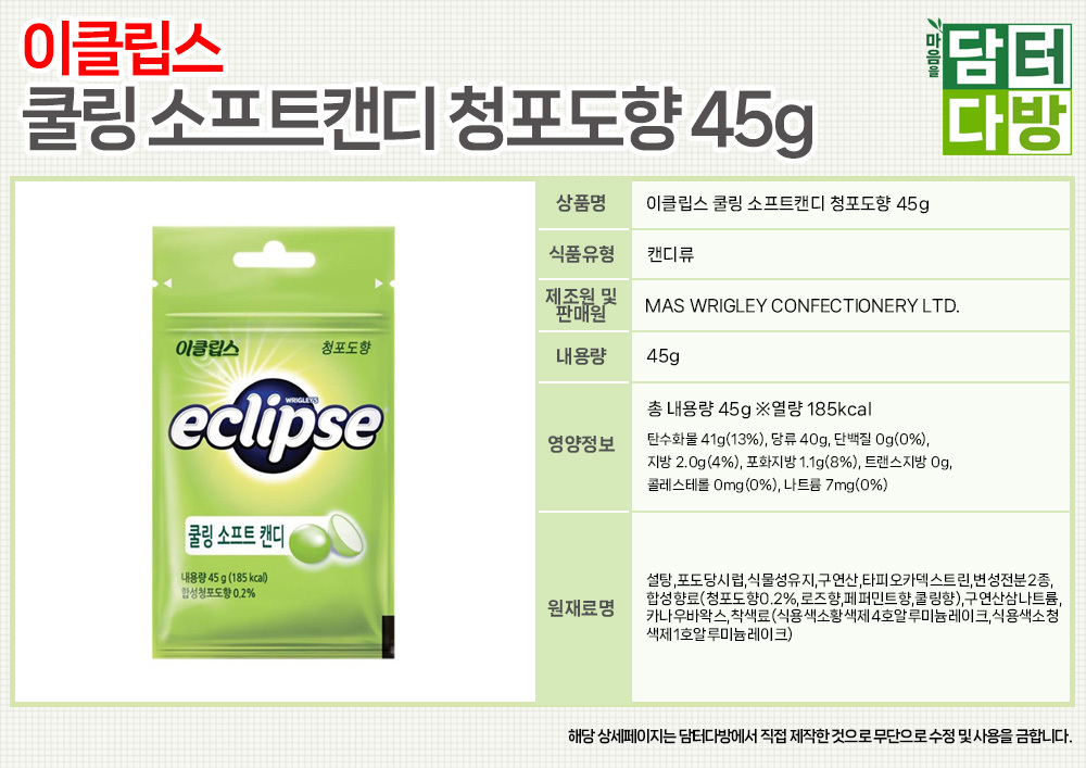 이클립스 쿨링 소프트캔디 청포도향 45g X 20개