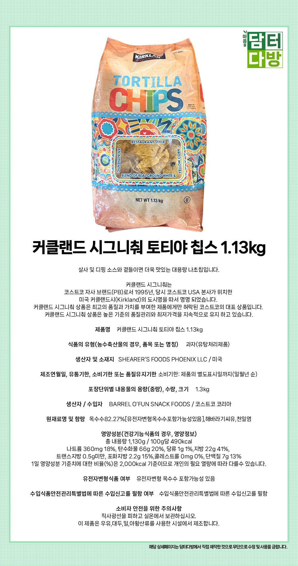 커클랜드 시그니춰 토티야 칩스 1.13kg