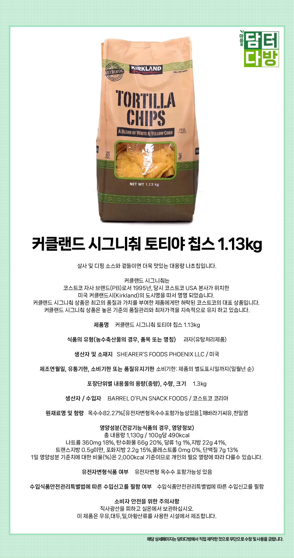 커클랜드 시그니춰 토티야 칩스 1.13kg