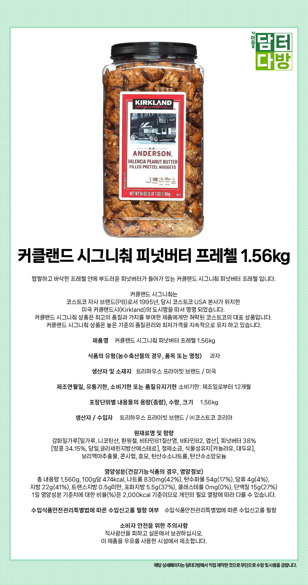 커클랜드 시그니춰 피넛버터 프레첼 1.56kg
