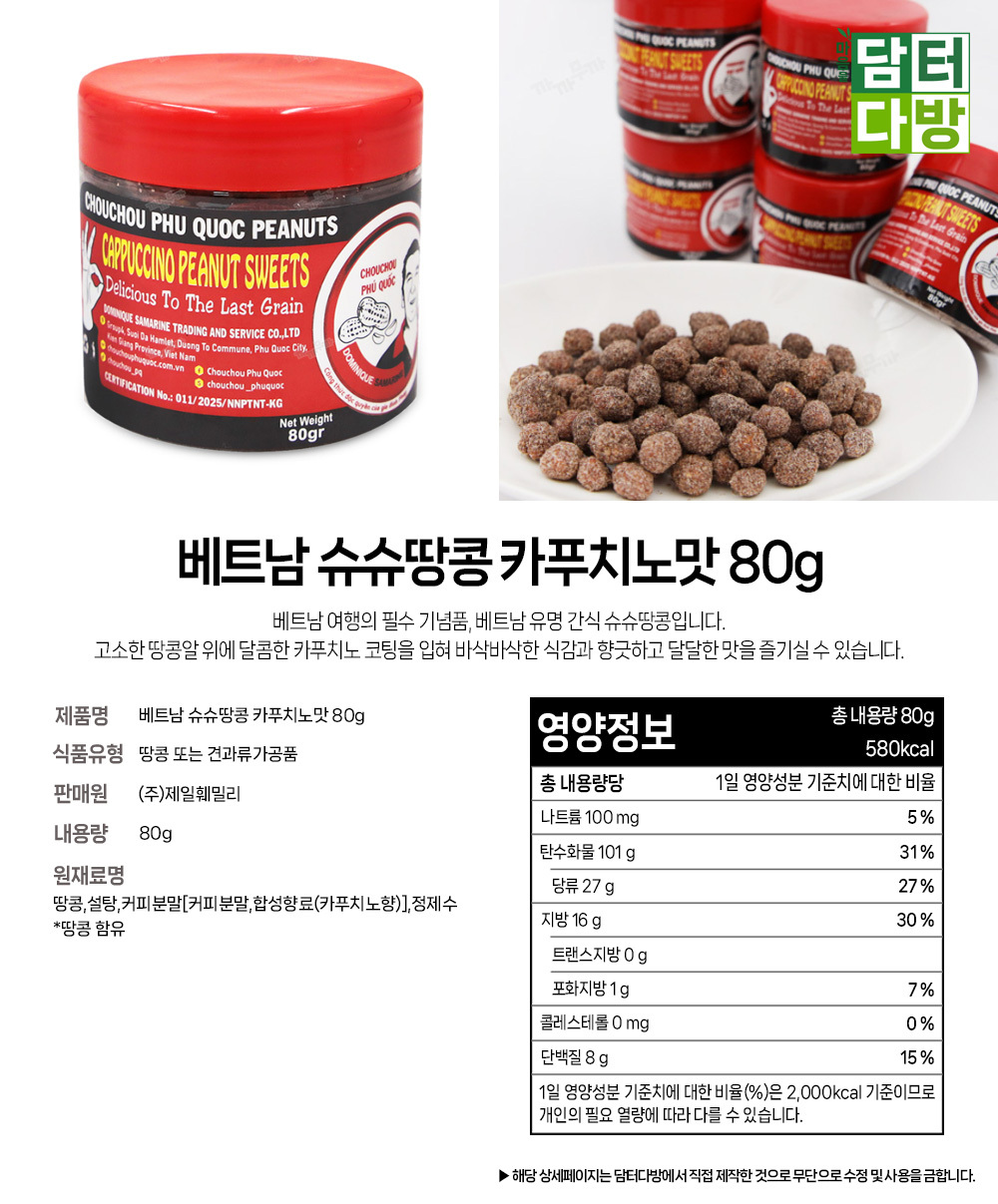 베트남 슈슈땅콩 카푸치노맛 80g X 10개
