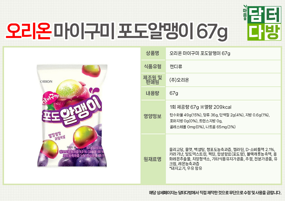 유전자재조합식품의 경우 표시 상세설명페이지 참고