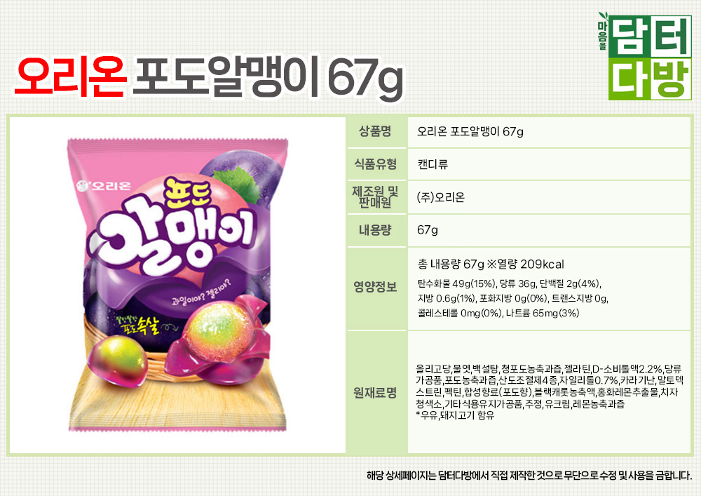 오리온 포도알맹이 67g X 20개