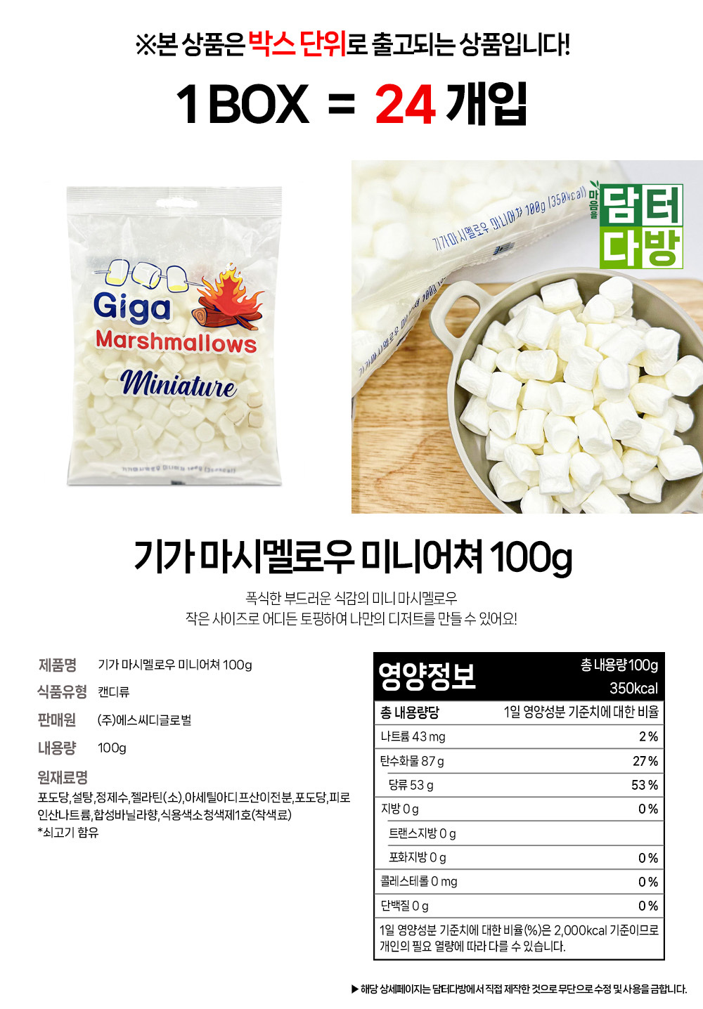 기가 마시멜로우 미니어쳐 100g 1BOX (24개입)