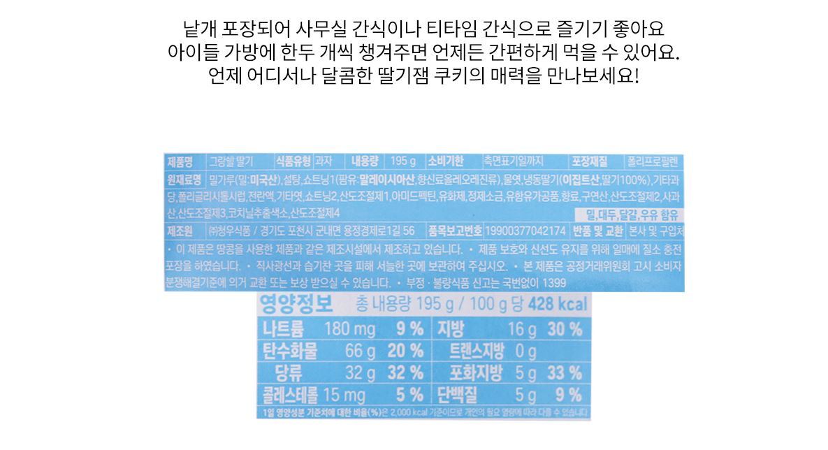 무배) 청우 그랑쉘 딸기 쿠키 195g X 3개