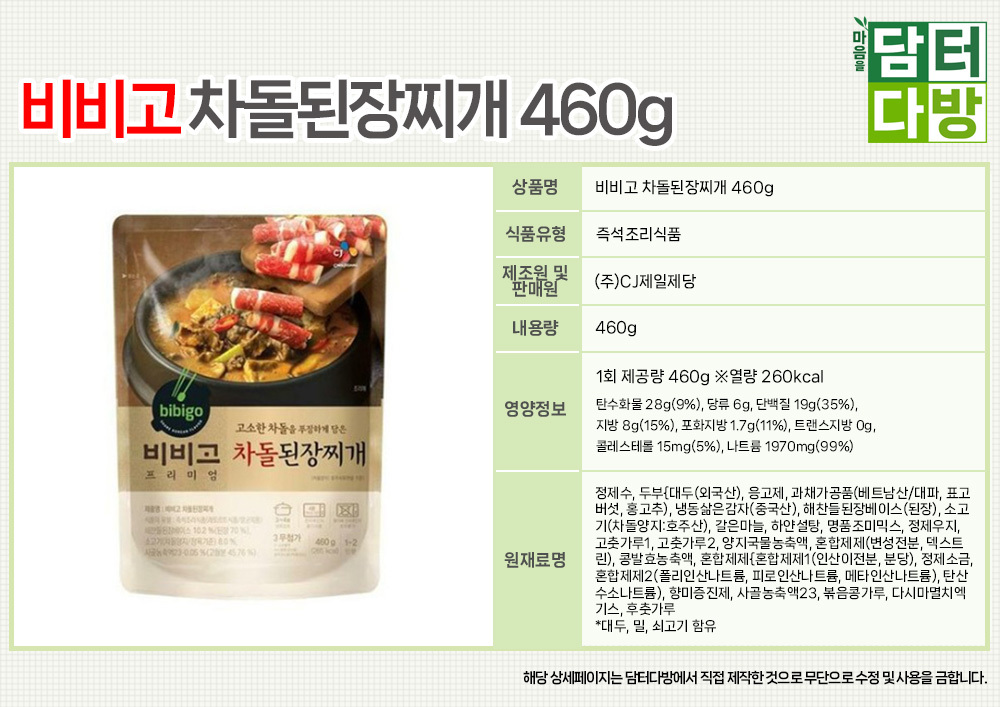 비비고 차돌된장찌개 460g X 5개