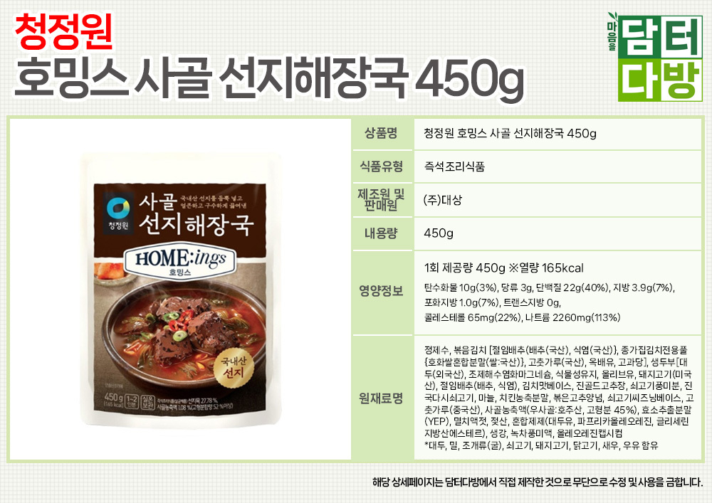 청정원 호밍스 사골 선지해장국 450g X 5개