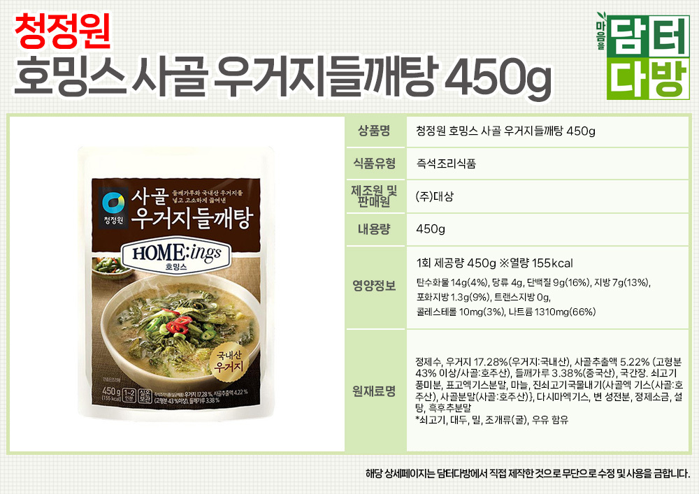 청정원 호밍스 사골 우거지들깨탕 450g X 5개