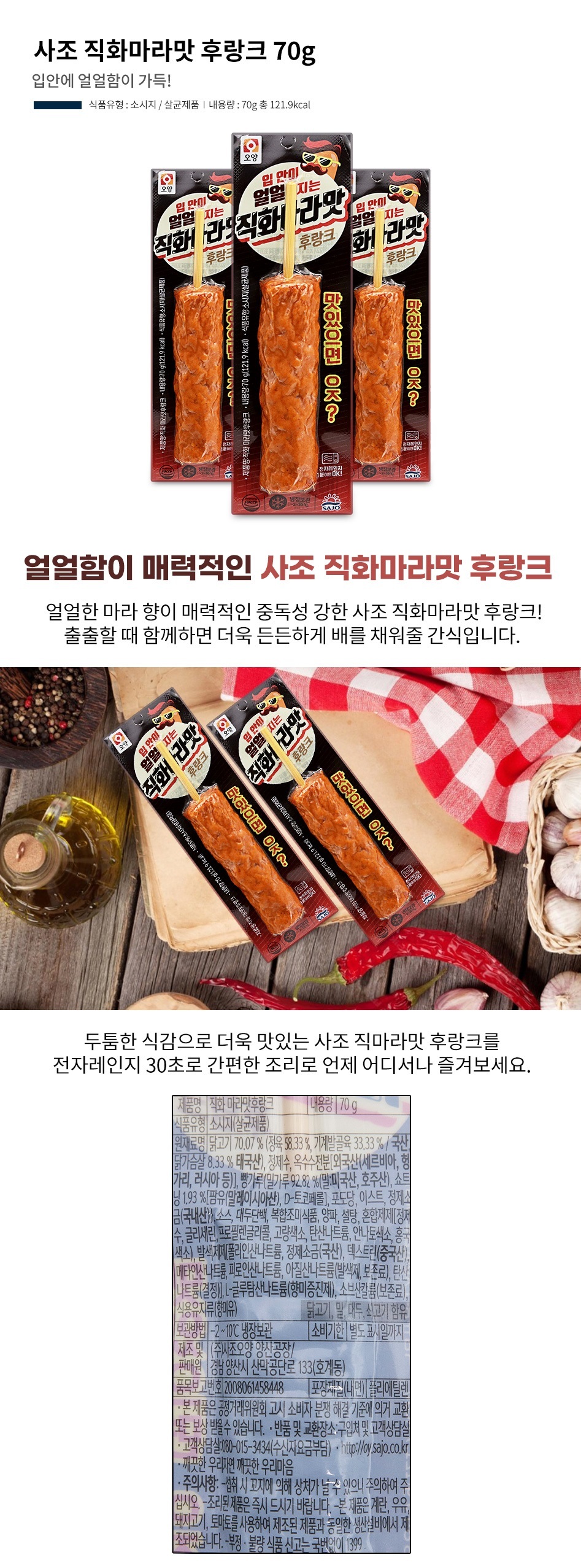 무배) 사조 직화마라맛 후랑크 70g x 30개 핫바 아이스박스