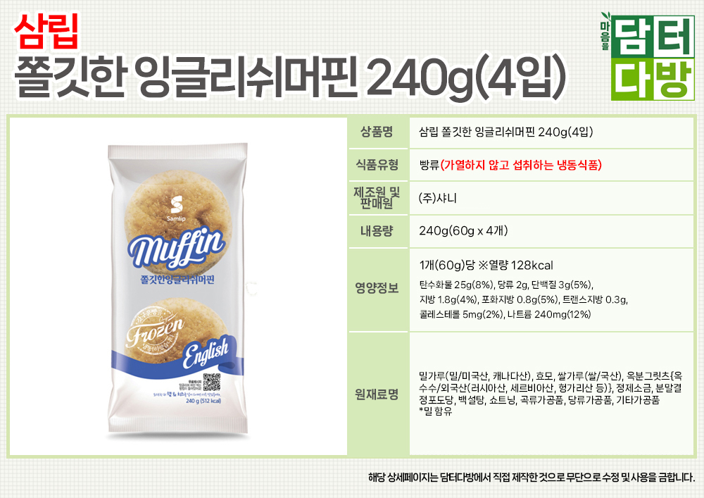 삼립 쫄깃한 잉글리쉬머핀 240g(4입)(냉동) X 12개