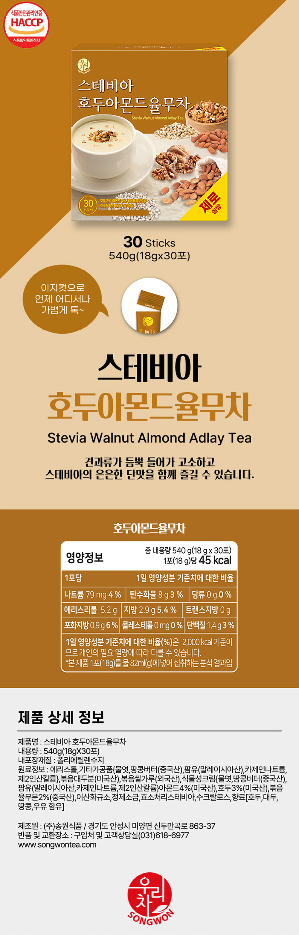 (무배) 송원 스테비아 호두아몬드율무차 30스틱