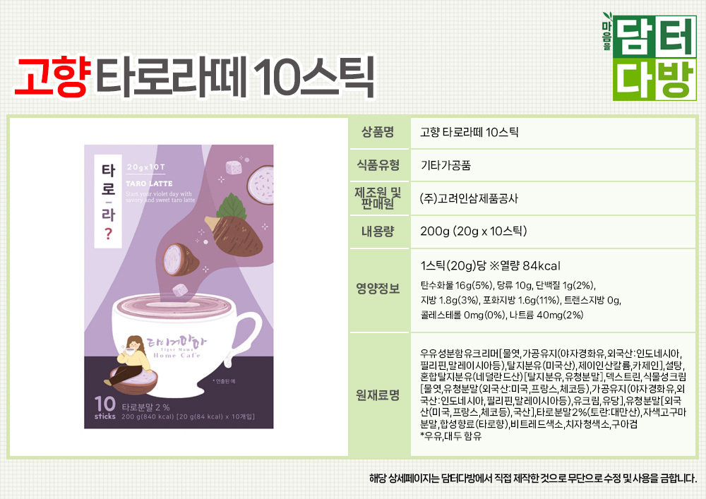 (무배) 고향 타로라떼 10스틱