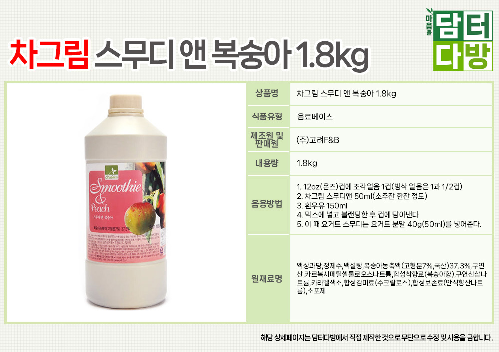 차그림 스무디 앤 복숭아 1.8kg