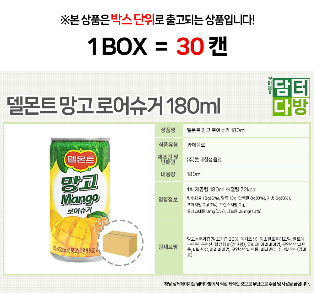 델몬트 망고 로어슈거 180ml (30캔)