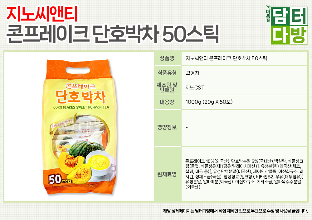 (무배) 지노씨앤티 콘프레이크 단호박차 50스틱