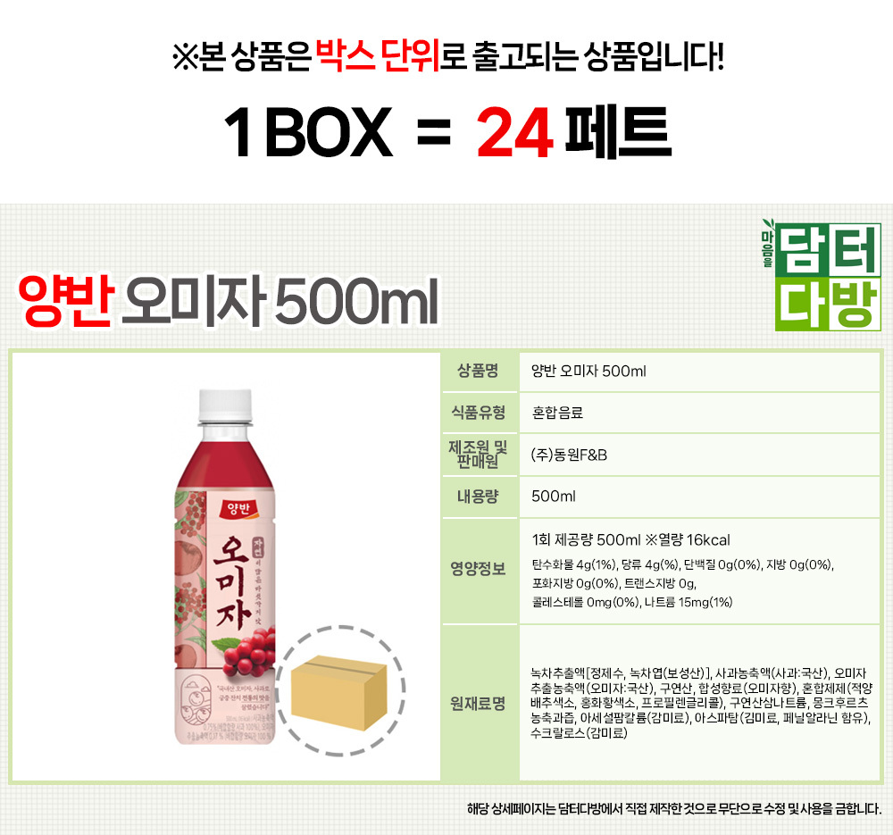 양반 오미자 500ml (24페트)