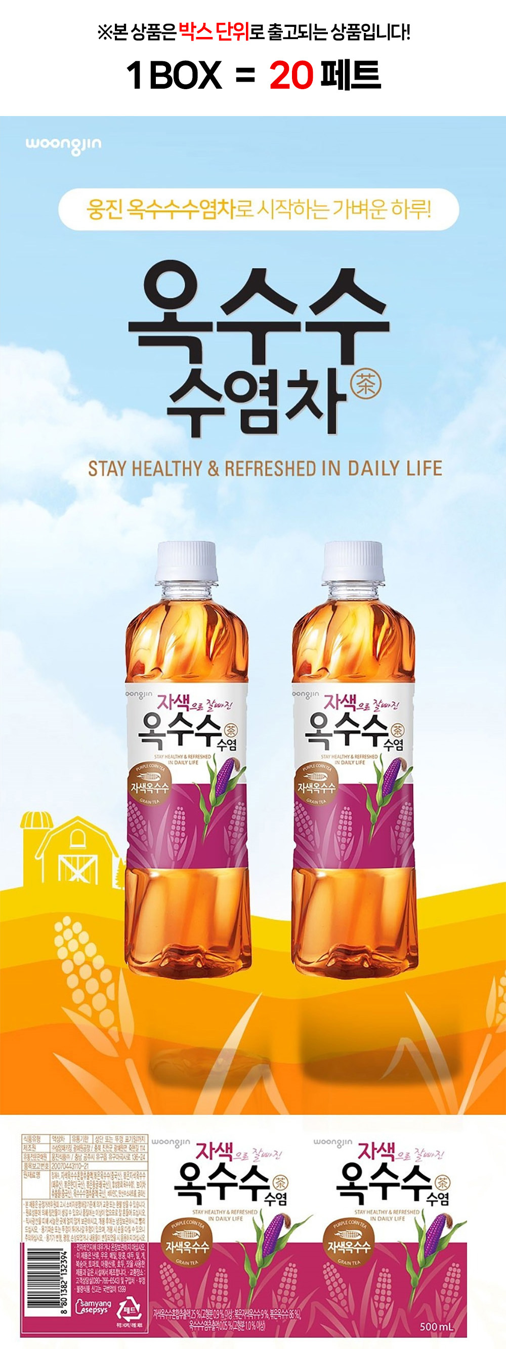 웅진자색옥수수수염차, 웅진옥수수수염차, 옥수수수염차, 자색옥수수수염차, 자색옥수수수염차박스, 자색오수수수염차500, 자색옥수수수염차페트