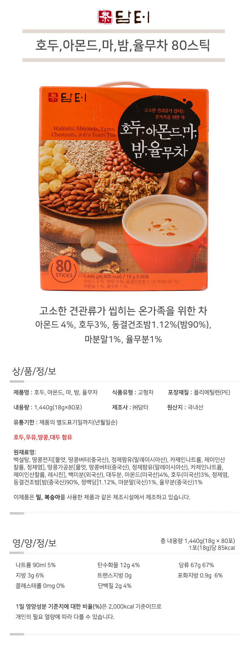담터 호두 아몬드 마 밤 율무차 80스틱 견과류차