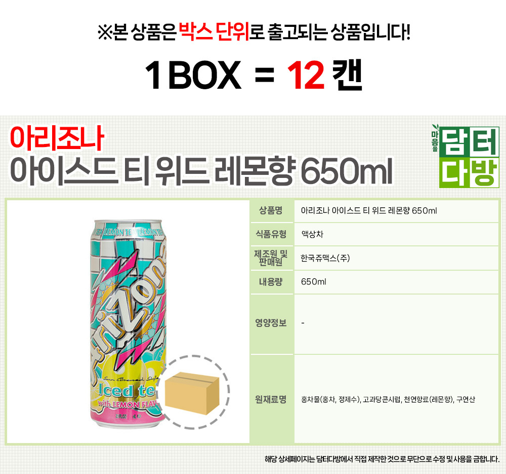 아리조나 아이스드 티 위드 레몬향 650ml (12캔)