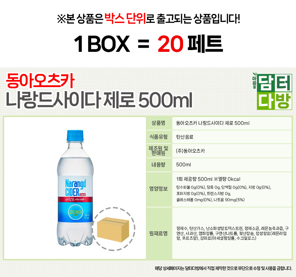 동아오츠카 나랑드사이다 제로 500ml (20페트)