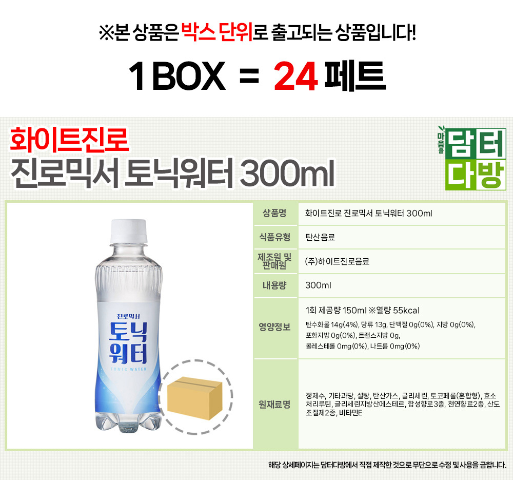 하이트진로 진로믹서 토닉워터 300ml (24페트)