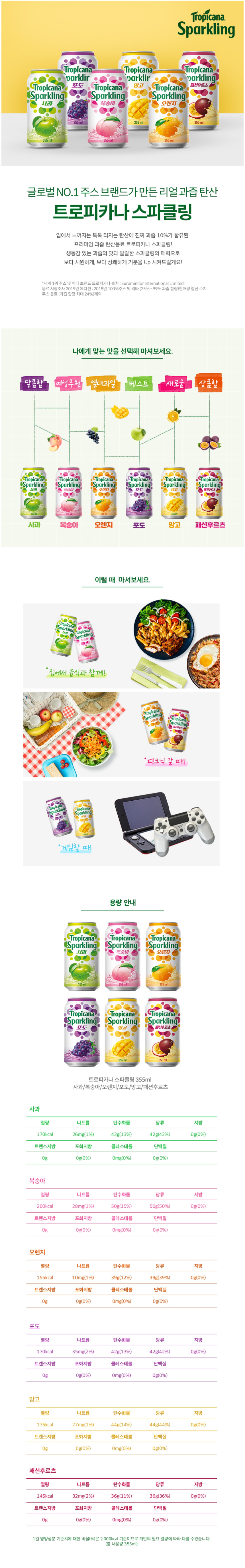 롯데칠성음료 트로피카나 스파클링 복숭아 355mlx24캔