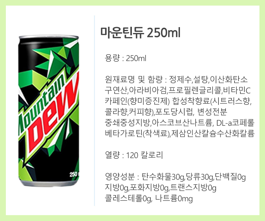 롯데 마운틴듀 250mlx30캔