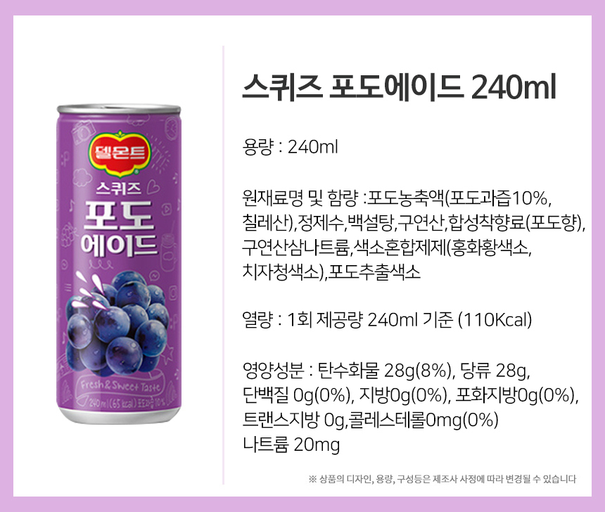 롯데 델몬트 스퀴즈 포도에이드 240mlx30캔