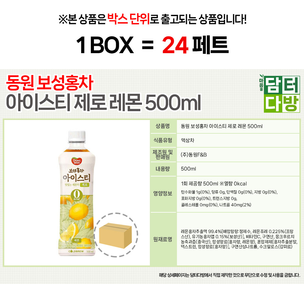 동원 보성홍차 아이스티 제로 레몬 500ml (24페트)