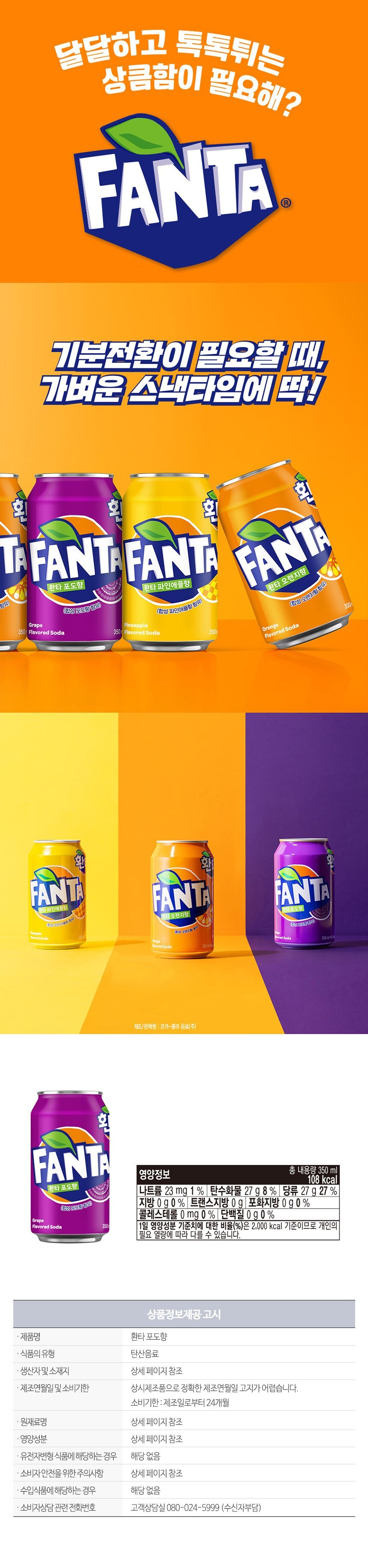 무배) 코카콜라 환타 포도 355ml X 24캔