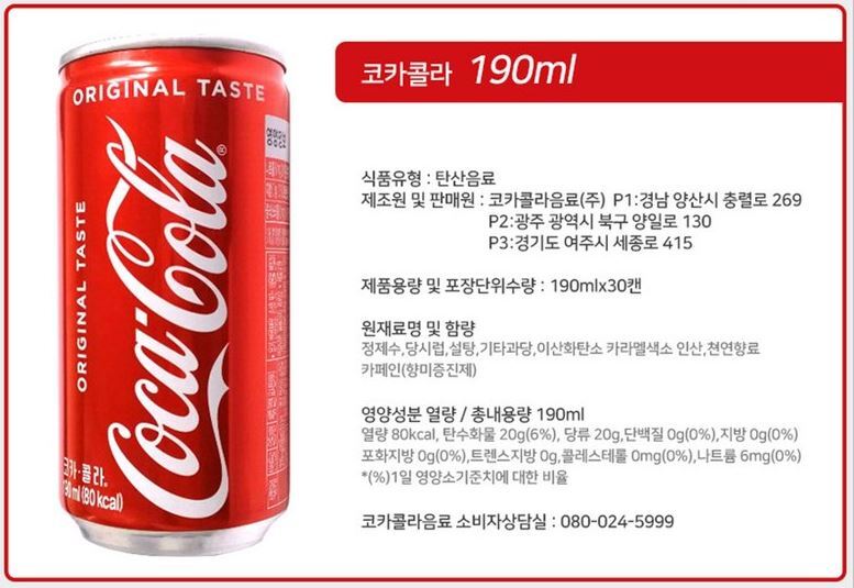 • 모델명코카콜라칠성사이다