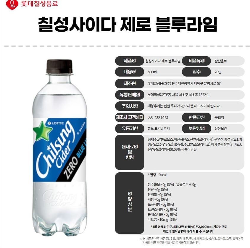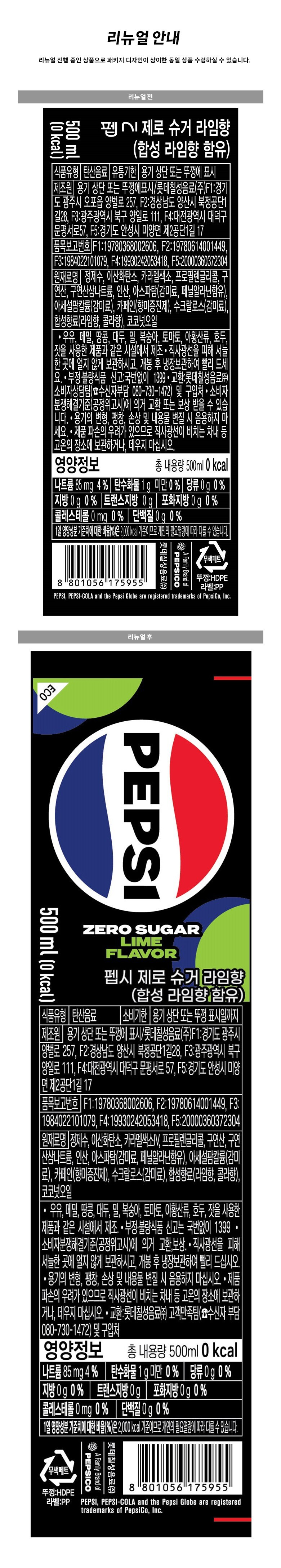 무배) 칠성사이다제로 블루라임500&펩시제로라임500ml X 각6개 총12개